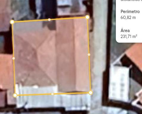 Aproximadamente 270m² de área total, e 180m² de área construída.